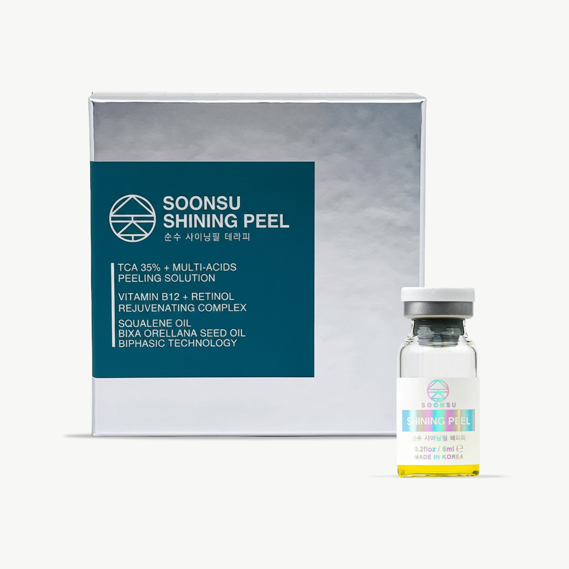 Shining Peel is a dual-phase product combining oil and water layers. The oil phase helps preserve the stability of key ingredients, supporting a more even and brighter-looking complexion. This exfoliating formula gently renews the skin's surface, leaving it smooth, refreshed, and revitalized. Suitable for use on the face and body.