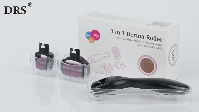 The Derma Roller 3-in-1 Kit is a complete microneedling solution designed to enhance the appearance of your skin. This versatile kit includes three interchangeable roller heads with different needle counts and lengths, making it suitable for use as a topical application enhancing tool on the face, body, neck, and scalp.