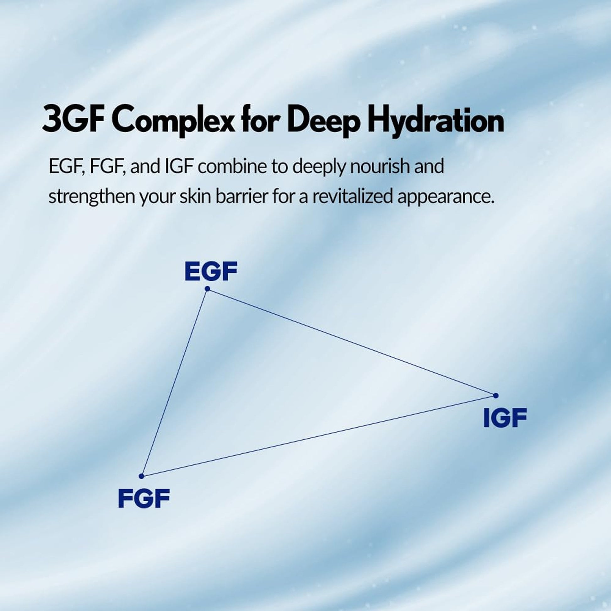 - Supports skin hydration and elasticity with 3GF Complex (EGF, FGF, IGF)